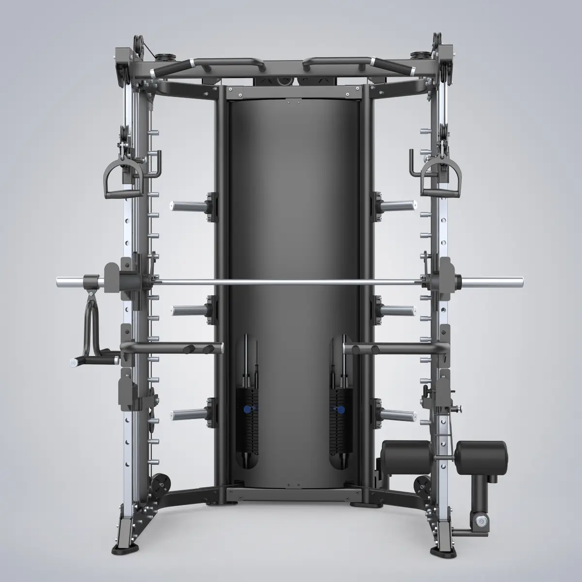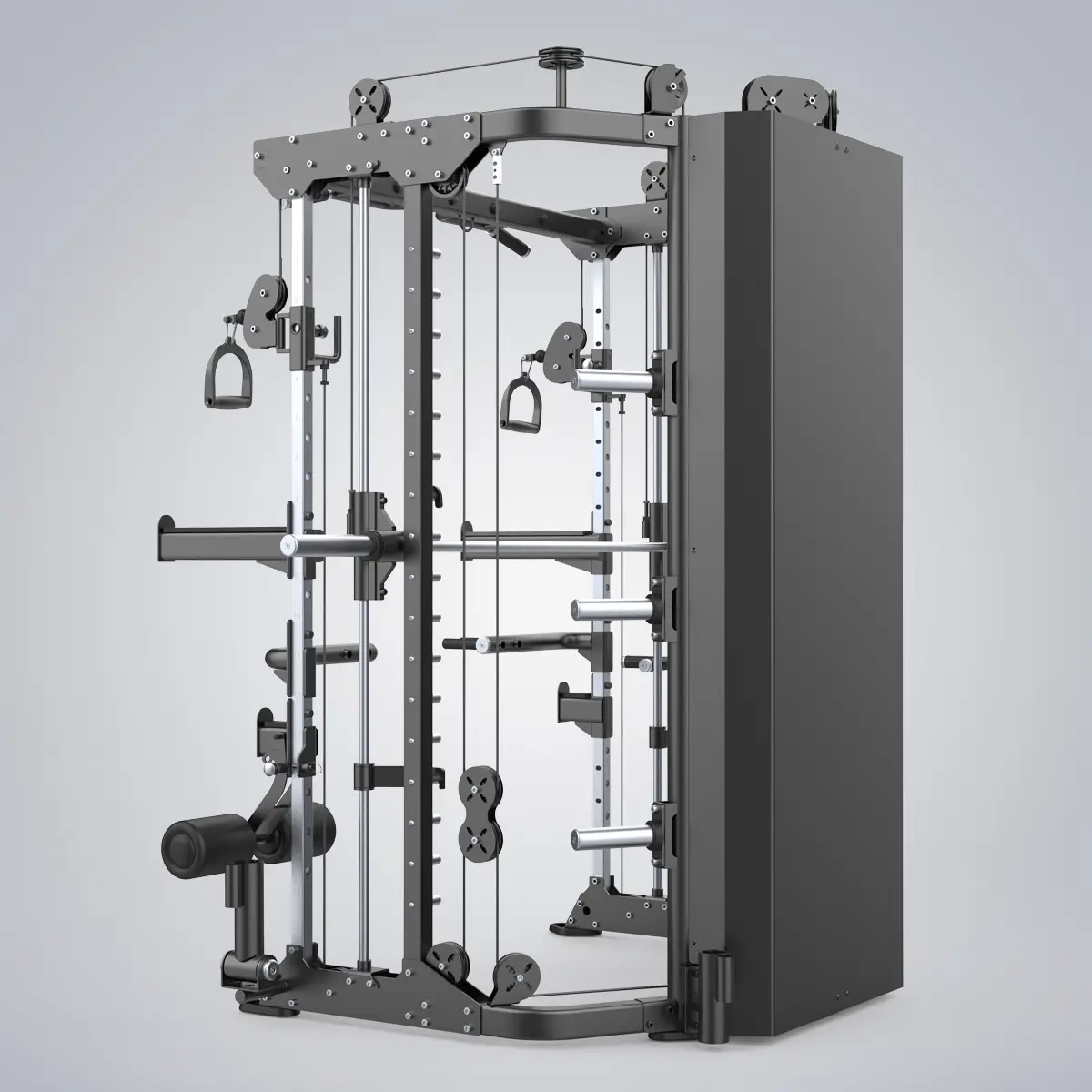 space. It has pull up/chin up bars, spotter arms, j-hooks for squat