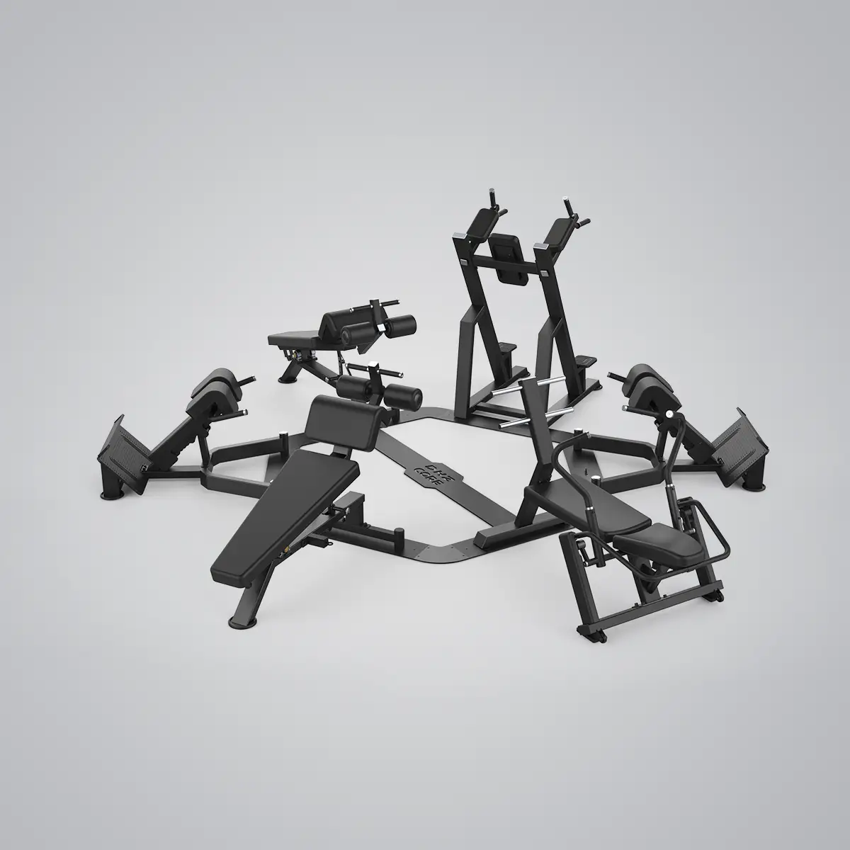 The CORE Circle is stably connected to the floor by flat steel to prevent members from moving individual pieces of equipment, thereby disrupting organisation and use, and possibly scratching your floor.