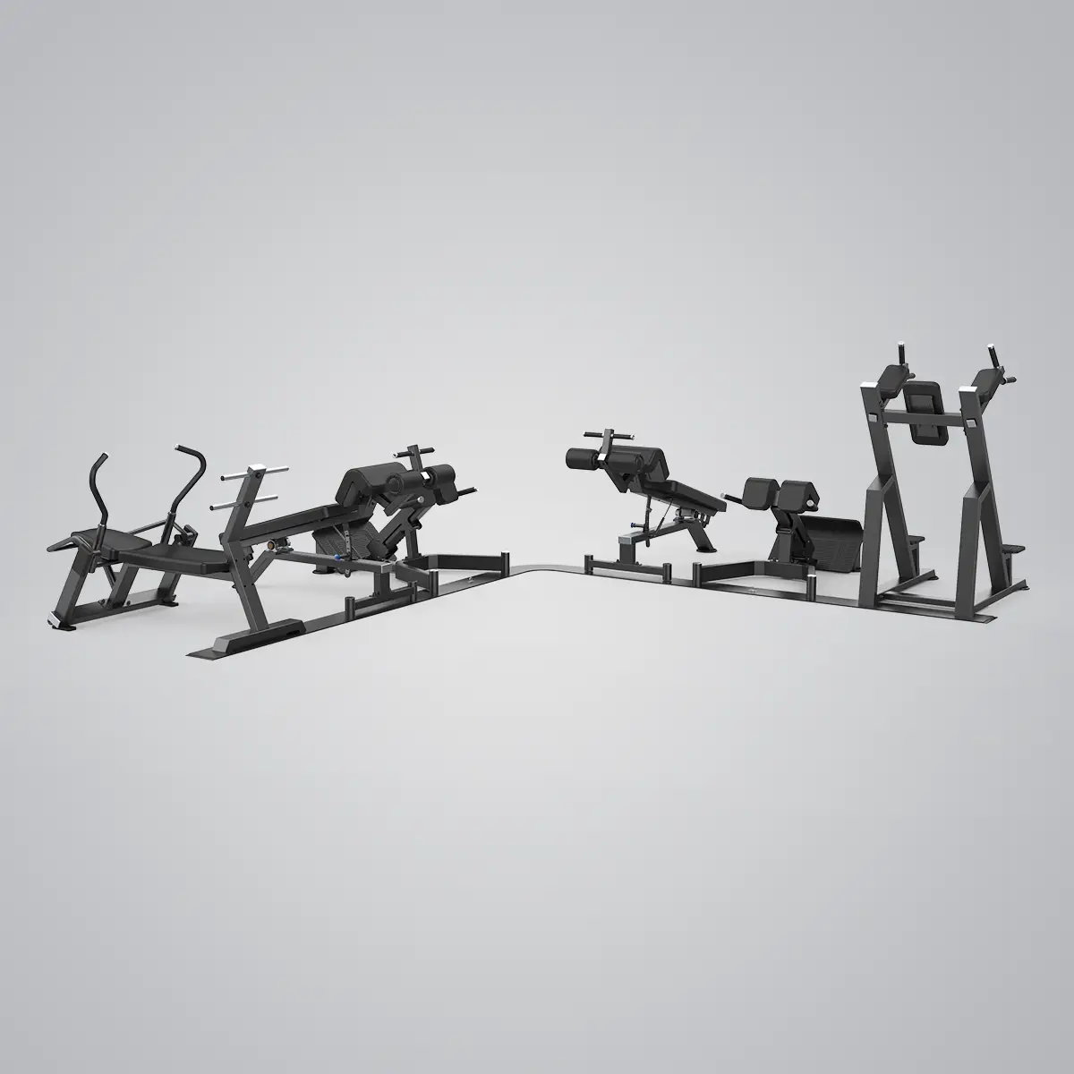 The CORE Circle is stably connected to the floor by flat steel to prevent members from moving individual pieces of equipment, thereby disrupting organisation and use, and possibly scratching your floor.