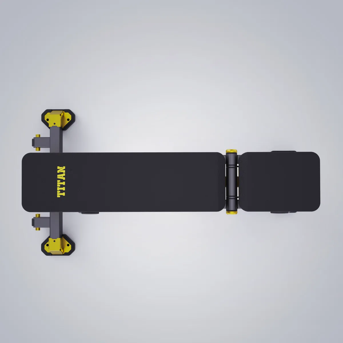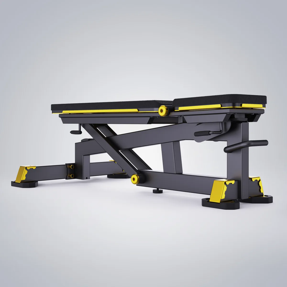 Bench with seat and backrest adjustment; Wheels for mobility; Adjustable to various angles.
