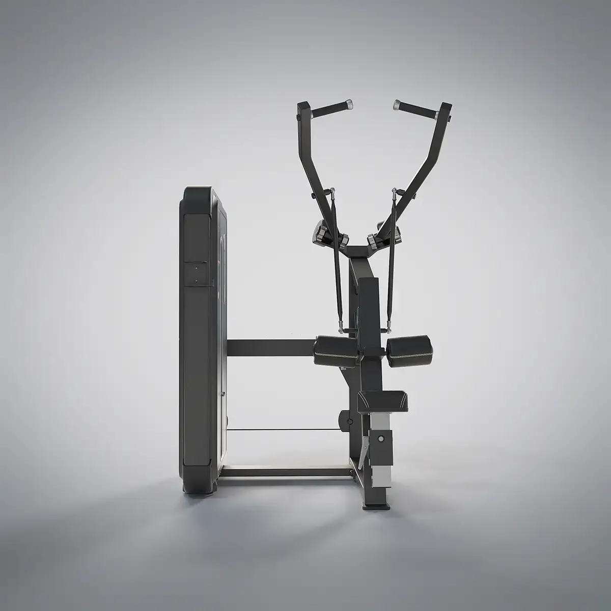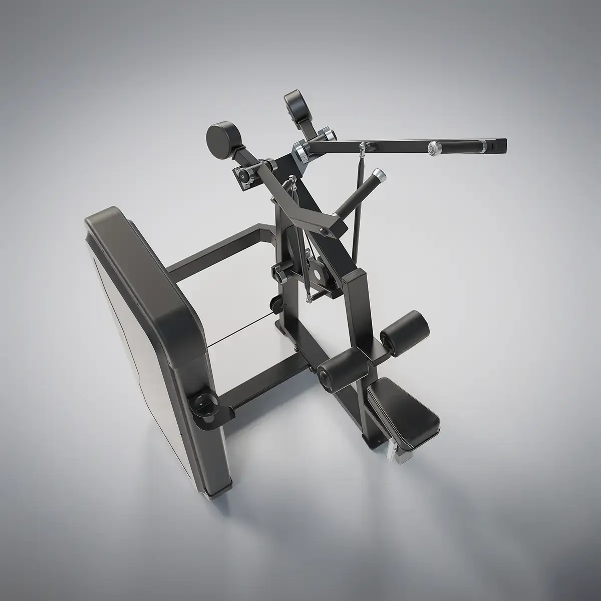 The slightly upwardly angled position of the seat ensures stability. Movement pattern follows the natural movement sequence. Individual, divergent device arms, ensure a natural, downward-facing pull movement and a lot of training comfort. Adjustable leg pad for adaptation to all user sizes.