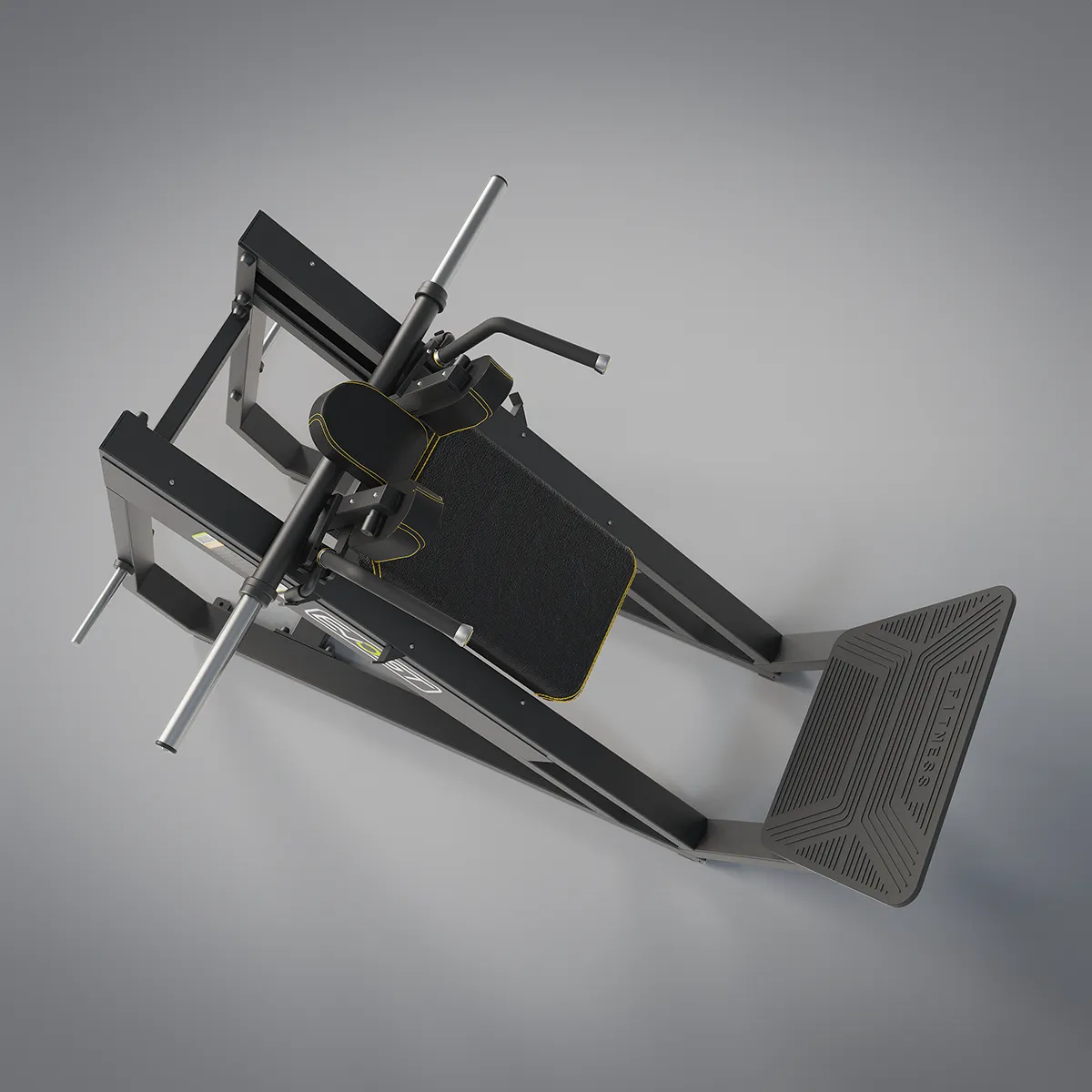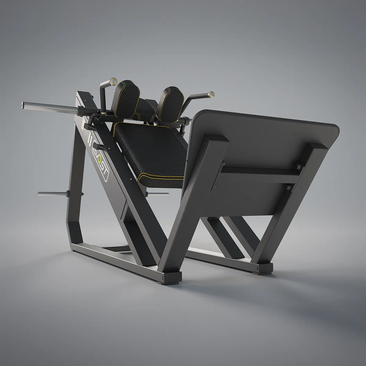 Upper body is fixed by shoulder and back cushions. Diagonal upward movement. Easy to up and remove the discs. Shelves for weight plates.