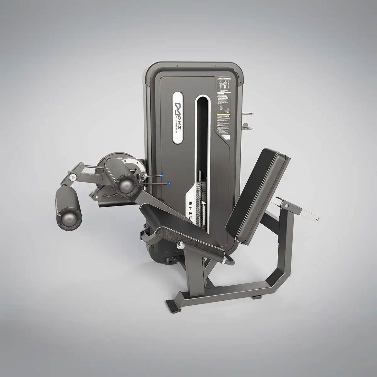 The eccentric imitates a natural force curve over the entire movement sequence according to the backrest, shin cushions and movement radius limiters are easily adjustable Side handles offer stability in the design.