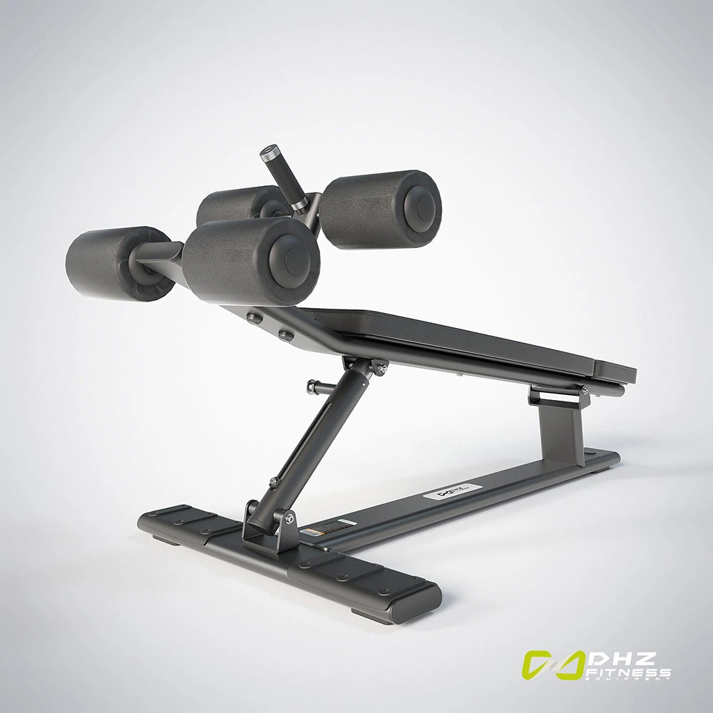 Negative bench and abdominal trainer with different adjustment angles. Handles for easy ascent and descent. Fold-out handle and wheels for mobility.