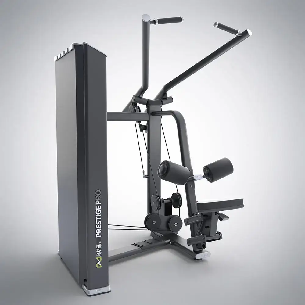 Seated training for upper body and back, trains the entire back muscles. The handle is pulled to the upper body in a controlled position, the cable pull allows a constant pulling movement for a pleasant exercise execution. Height adjustableE cushions beveled for the thighs provide stability. Comfortable weight selection from sitting.