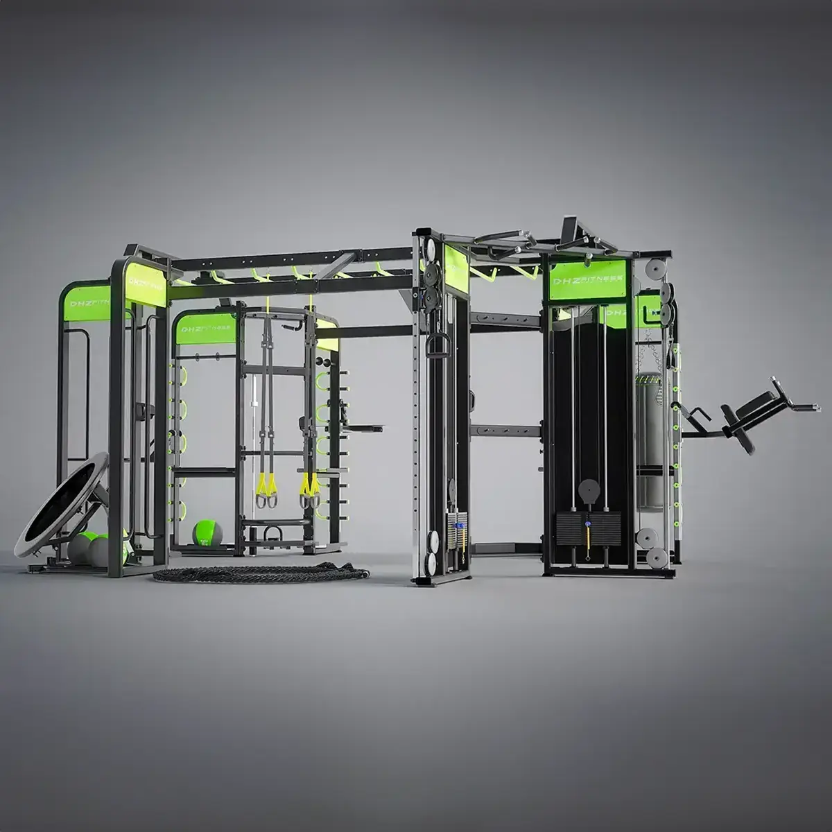 The luxury solution among our scaffolding. If you have enough space, this offers freestyle. Scaffolding optimal possibilities for your group training. Massive and stable for a variety of possible exercises – a real pleasure for your members and trainers.