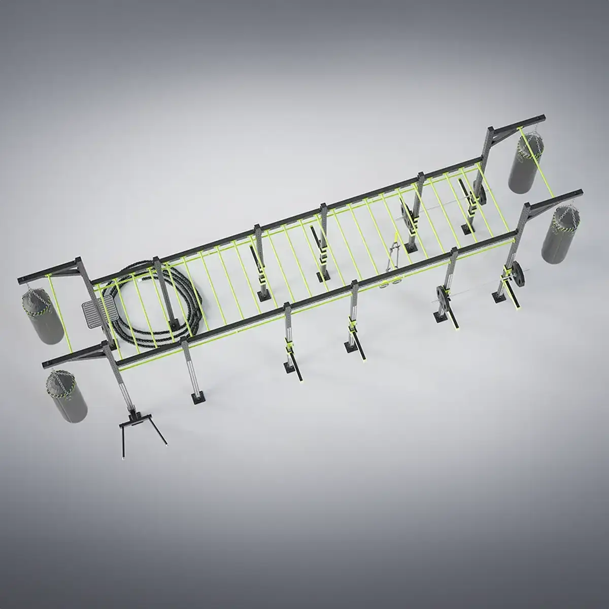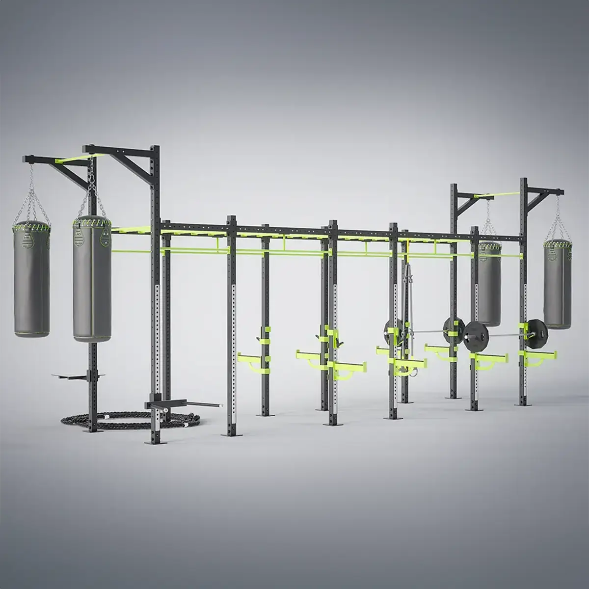 The 80x80mm profile steel stands ensure a particularly good stiffness, which offers immense advantages in group workouts (reduced swinging of the tower).